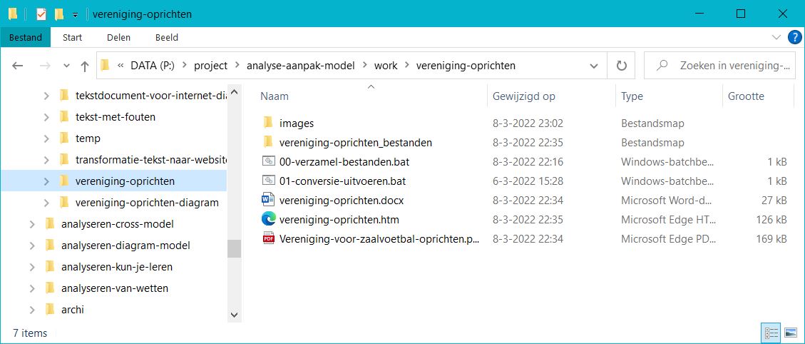 Het tekstdocument staat in een folder die in de configuratie is bepaald. Naast het tekstdocument staan mogelijk PDF bestanden en plaatjes die bij het model en de website publicatie horen.