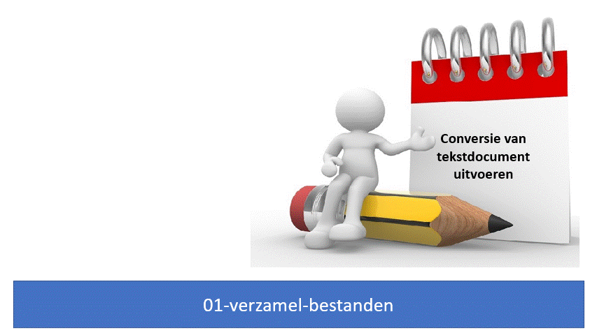 • batch 00-verzamel-bestanden. Voor elk tekstdocument bestaat een aangepaste versie.